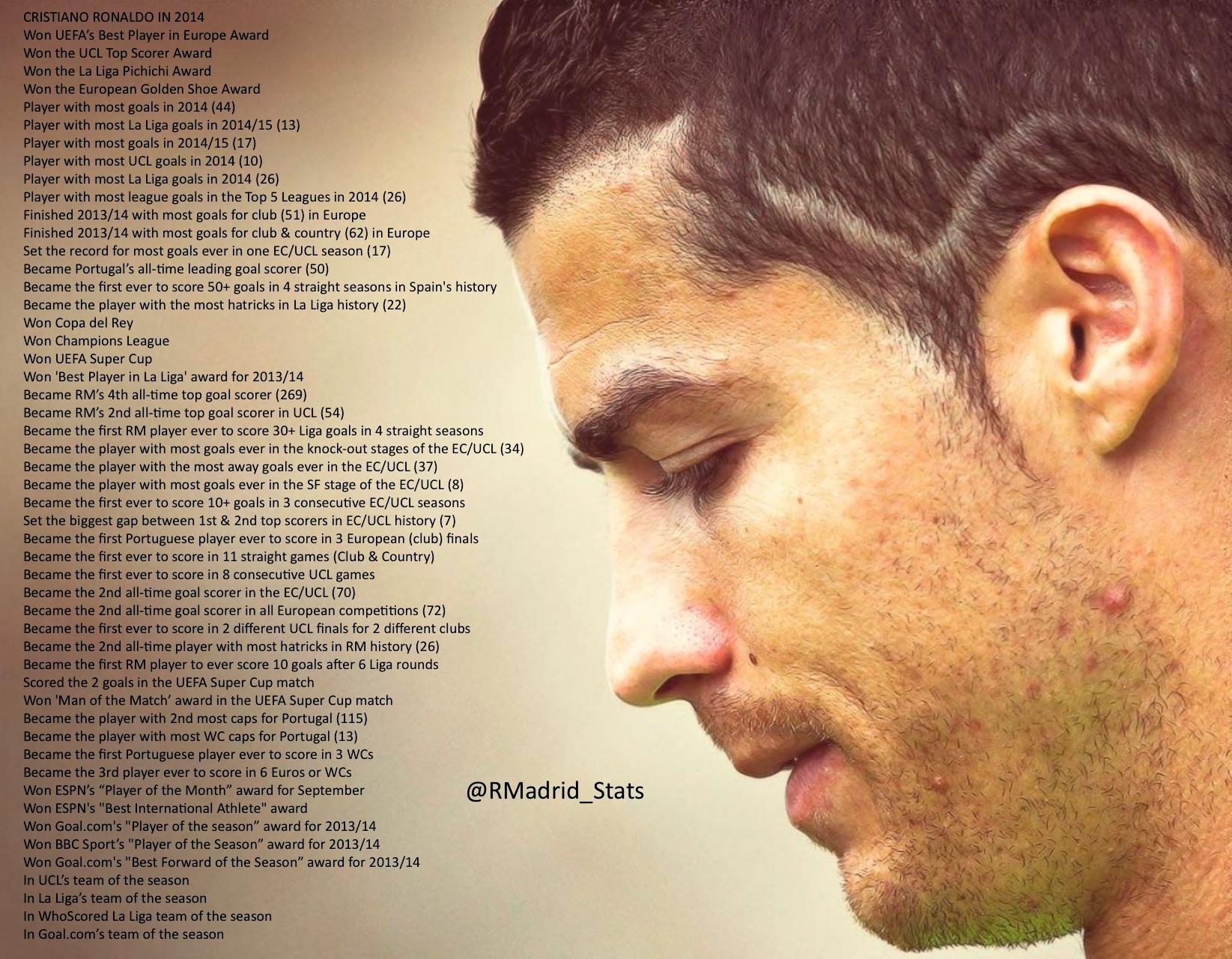 @RMadridStats have produced a wonderful graphic (above) listing all of Ronaldo’s 2014 records and achievements.
